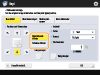 <Indstillinger for nummerering af kopisæt>Teksten for <Sidenummerering> og <Vandmærke> kan også vælge fra tekst, der er registreret i <Registrér tegn til sidenummerering/vandmærke>.
