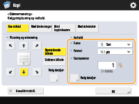 Hvis du indstiller <Indstillinger for nummerering af kopisæt> til <Til>, kan de indstillinger, du angiver, blive ændret på følgende måde. <Indstillinger for nummerering af kopisæt>