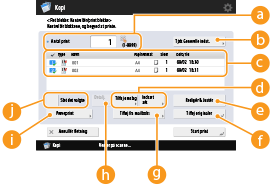 Nummeret i vises som 1, 2, 3... i den rækkefølge, dokumenterne er scannet, og kopierne printes i rækkefølge. Hvis du vil ændre rækkefølgen, skal du trykke på <Slet det valgte> i  og angive rækkefølgen.