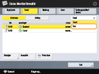 (Stop), når der er flere afsendelsesjob, for at vise skærmbilledet til valg af det afsendelsesjob, der skal annulleres. Hvis det afsendelsesjob, du vil annullere, ikke vises, skal du trykke på <Kontrollér andre job> for at vise <Sendejob>. Vælg det job, som du vil annullere, og tryk på <Annullér>. |