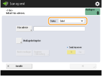 Sådan sendes til en enhed på samme netværkVed afsendelse af en I-fax til en enhed på samme netværk kan du sende direkte til enheden uden at gå gennem mailserveren. Indstil <Send via server> til <Fra> før afsendelse af en I-fax.