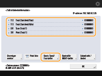 <Tjek Enhedskonfigurering> på den samme skærm, kan du tjekke det tilbehør, der er installeret i maskinen, samt versionen af sikkerhedschippen i forbindelse med kryptering af data på harddisk.Du kan få oplysninger om optællingsbetingelser ved at kontakte din lokale Canon-forhandler.