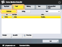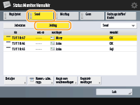 Angivelse/registrering af destinationer fra afsendelseshistorikkenDu kan angive modtagere og registrere modtagere til adressebogen fra afsendelseslisten på skærmen <Status Monitor/Annullér>. Så undgår du at skulle angive adressen direkte, og du undgår også at sende til en forkert modtager, fordi du har angivet den forkerte adresse.