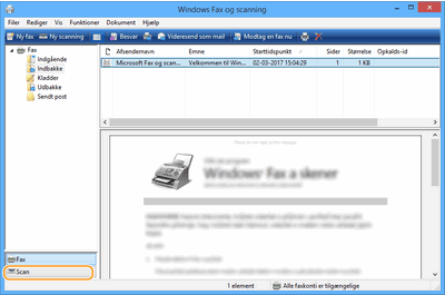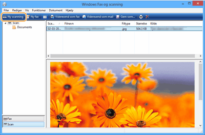 Når scanningen er udført, vises det scannede dokument på listen med filer på skærmbilledet [Windows Fax og scanning] og gemmes i mappen [Scannede dokumenter] på [Dokumenter].