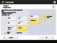 Hvis du vælger <PDF> eller <XPS> som filformatet, kan du indstille <Kompakt> og <OCR (Søgbar tekst)> på samme tid. I dette tilfælde vises <PDF (Kompakt)> eller <XPS (Kompakt)> som filformat på skærmbilledet Grundlæggende Scan og send-funktioner.