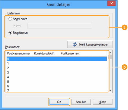 Det boksnavn, der er registreret i maskinen, kan anvendes til printerdriveren. For detaljer kan du se hjælpen til printerdriveren.