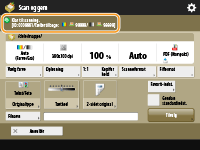 Når du trykker på <Scan og gem> på skærmen <Hovedmenu> og derefter trykker på <Mailboks>, <Avanceret område>, <Netværk> eller <Hukommelsesmedie> for at scanne originaler, vises følgende indstillingsskærm.