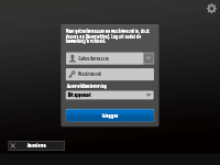 rechtsboven in het aanmeldingsscherm. <Toon knop vr wijzigen wachtwoord in Instellingen>U kunt opgeven of u de cache van de aangemelde gebruiker wilt opslaan of verwijderen. <Aantal caches voor aangemelde gebruikers>