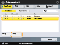 (Stop) na panelu sterowania, kiedy wyświetlany jest ekran podstawowych funkcji kopiowania, zadanie kopiowania zostanie wstrzymane i wyświetlony zostanie komunikat <<Stop>Wybierz zadanie kopiowania, które chcesz anulować.> wraz z listą zadań kopiowania. Możesz wybrać zadanie kopiowania z listy i anulować to zadanie naciskając na <Anuluj>.Jeśli logujesz się za pomocą zarządzania uwierzytelnianiem prywatnym i wylogowujesz się, naciskając przycisk
