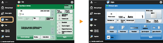 Pode criar um botão de atalho para as funções no ecrã <Menu principal>. Utilize este botão para aceder a uma função diferente sem voltar ao ecrã <Menu principal>. Para criar um atalho, inicie sessão com privilégios de administrador.