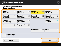 Выберите кассету, в которую загружена бумага, и нажмите кнопку <Пользоват. формат>.