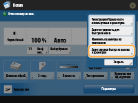Для экрана обычного копирования из <Заданные часто исп. параметры> можно зарегистрировать установленную вами кнопку быстрого вызова <Часто исп. параметры>.