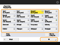 <OK>. Registrera ofta använda pappersformat och typer för universalfacket