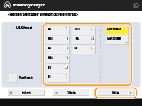 Om du registrerar pappersformat du använder ofta på knapparna <S1> till <S5> kan du hämta dem med ett knapptryck. Registrera papper i fritt format (Eget format)