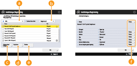 När du registrerar inställningarna för den egna papperstypen ser du till att ändra dess namn. Du kan inte ändra inställningarna för grundinställda papperstyper som har registrerats på maskinen.