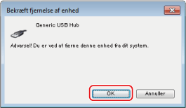 Klik på [OK], hvis dialogboksen [Bekræft fjernelse af enhed] åbnes.