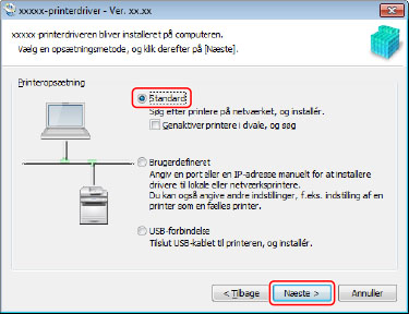 Vælg [Standard] → klik på [Næste].