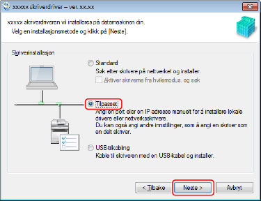 Velg [Skrivernavn] hvis nødvendig → klikk på [Neste].