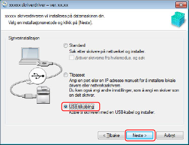 Ved valg av [USB-tilkobling] for å installere
