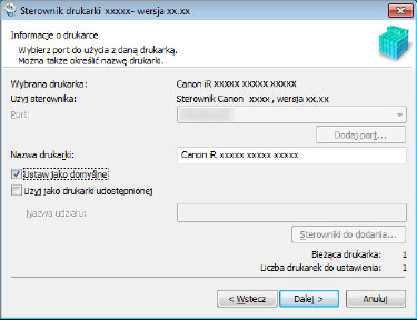 W razie potrzeby zmień wartość w polu [Nazwa drukarki] → kliknij przycisk [Dalej].