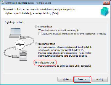 Wybierz pozycję [Połączenie USB] → kliknij przycisk [Dalej].