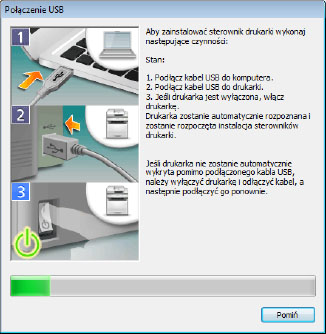 Jeżeli zostanie wyświetlone poniższe okno, połącz urządzenie z komputerem za pomocą kabla USB → włącz urządzenie.