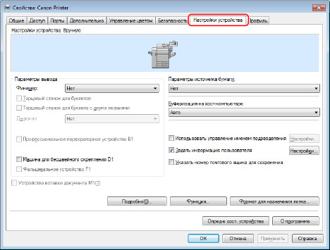 Благодаря этим настройкам драйвер может использовать функции устройства для правильного выполнения печати.
