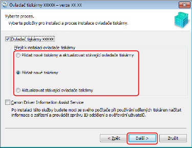 [Canon Driver Information Assist Service]: Tuto možnost vyberte, jestliže chcete použít funkci získání informací o zařízení.
