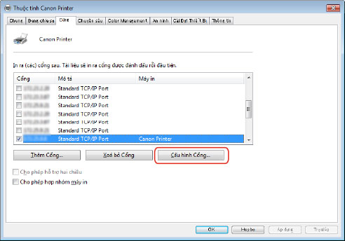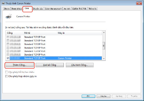 Chỉ định một cổng tạm thời ([LPT1], v.v...) và cài đặt trình điều khiển với [Tùy chỉnh].