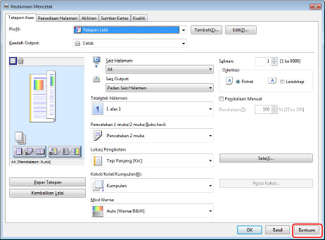 Bantuan dipaparkan dengan mengklik [Bantuan] dalam skrin pemacu.