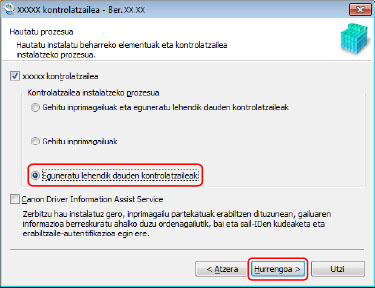 Hautatu [Eguneratu lehendik dauden kontrolatzaileak] [Kontrolatzailea instalatzeko prozesua] aukeran → sakatu [Hurrengoa].