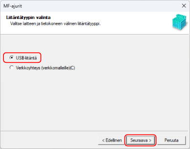Ladatun MF-ajurin asentaminen (USB-yhteys)