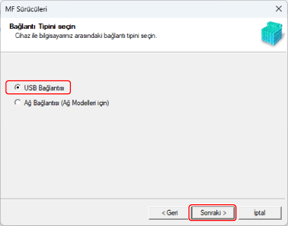 Aşağıdaki ekran görüntülenirse, [USB Bağlantısı] öğesini seçin → [Sonraki] düğmesini tıklatın.