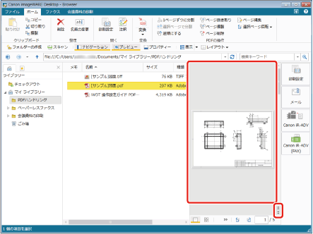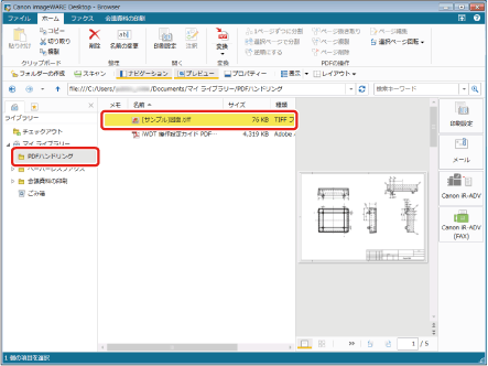 「PDFハンドリング」フォルダー内の「[サンプル]図面.tiff」を選択します。