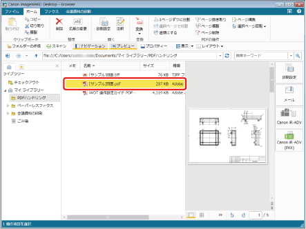 「PDF文書への変換」で作成した「[サンプル] 図面.pdf」を選択し、