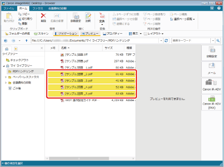 「PDF文書をばらばらにする」でばらばらにした「[サンプル]図面_2.pdf 」~「[サンプル]図面_5.pdf」を選択します。