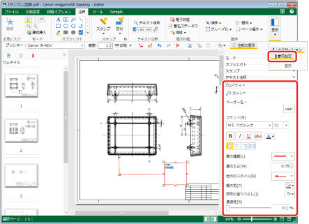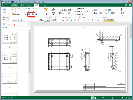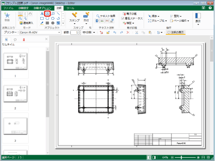 「PDF文書への変換」で作成した「[サンプル]図面.pdf」を選択して、[ホーム]タブの[注釈]をクリックします。