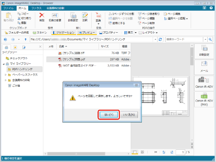 表示されたダイアログボックスで[はい]をクリックします。ページが回転し、文書が保存されます。