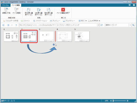 移動するページを選択して、移動先にドラッグ&ドロップします。