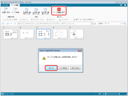 [ページ編集]タブの[ページ編集の終了]をクリックし、表示されたダイアログボックスで[はい]をクリックします。文書が保存されます。
