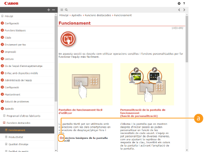 Feu-hi clic per mostrar la informació sobre com veure Guia de l'usuari, com realitzar una cerca i altres informacions.