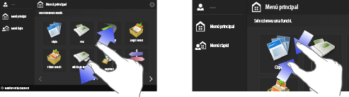 Actueu de la mateixa manera que amb un smartphone (desplaçar ràpidament/pinçar)En algunes pantalles, com ara el Menú principal i el Menú ràpid, podeu canviar de pàgina o desplaçar-vos passant el dit cap amunt/avall o cap a la dreta/esquerra a la pantalla de la mateixa manera que ho faríeu amb un smartphone.