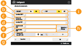 ![]() <Autenticació SMTP (SMTP AUTH)>Per utilitzar l'autenticació SMTP, premeu <On>, introduïu el nom d'usuari i la contrasenya dels comptes de correu especificats a <Nom d'usuari> i <Contrasenya>.