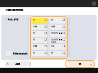 ![]() Můžete také vybrat možnost <Volná velikost>, která nevyžaduje zadání velikosti papíru. Vyberte možnost <Volná velikost> v případech jako jsou vkládání a kopírování pomocí papíru o neznámé velikosti nebo pokud byla velikost papíru předem zaregistrována v ovladači tiskárny.