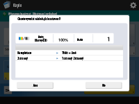 Je-li volba <Spustit operaci pro vyvolání (Operace se spustí po stisknutí tlačítka.)> nastavena na <Vyp>, po stisknutí <Ano> se zobrazí obrazovka nastavení. To umožňuje změnu nastavení před stisknutím