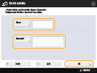 Pro zadání stiskněte <Název> nebo <Komentář>. Jelikož obě zadání se zobrazí na tlačítku na Rychlá nabídka, je praktické, zadáte-li název nastavení v <Název> a zprávu v <Komentář>.