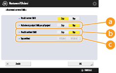 Vyberte <Zap> v <Použít server SMB> a proveďte potřebné nastavení.