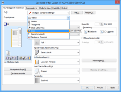 Vælg [Gem] fra [Outputmetode], og klik på [Ja].