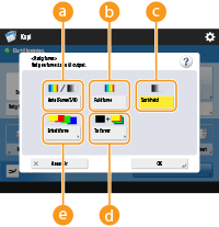 Du kan vælge farvestatussen til kopiering. Du kan f.eks. på den måde spare toner ved at kopiere farveoriginaler i sort-hvid eller købe billetter med en enkelt farve som rød eller blå for at angive den dato, hvor de blev distribueret.