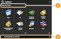 Druk op /b_in_btn_C0003_29.gif) op het Hoofdmenu en het scherm met basisfuncties om het scherm aan te passen, zoals het herschikken van knoppen of maken van sneltoetsen. Alleen een beheerder kan het hoofdmenu aanpassen. Het aanraakscherm aanpassen